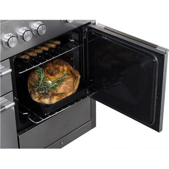 • Each large oven features 2 heavy-duty stainless steel racks, and 1 removable telescopic shelf with 5 rack positions