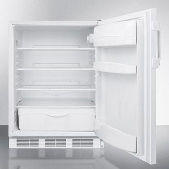 - Reversible Doors, Crisper Drawer, Automatic Defrost ADA Compliant, Adjustable Shelves, CFC Free, Commercially Approved, Automatic Defrost, Adjustable Thermostat, One Piece Interior Liner, Slim undercounter dimensions, Crisper, Hidden evaporator, Interior light, Fully Finished Cabinet, ADA Compliant in White