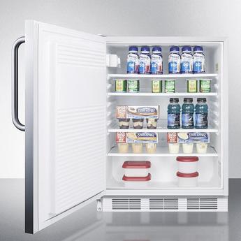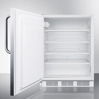 - Door Lock, Automatic Defrost ADA Compliant, Factory Installed Lock, Adjustable Shelves, CFC Free, Commercially Approved, Automatic Defrost, Adjustable Thermostat, Interior Light On Rocker Switch, One Piece Interior Liner, Slim undercounter dimensions, Deep shelf space, Hidden evaporator, Fully Finished Cabinet, ADA Compliant in Stainless Steel