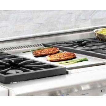• Liquid Propane, Sealed Double Ovens, 6.7 cu. ft. Total Oven Capacity, Griddle, Convection Oven, Self-Cleaning Mode, Continuous Grates, Viewing Window, Sealed Burners, Infrared Broiler, Blue LED Indicator Iights, Innovection Convection System, Self Clean Oven, Commercial Heritage in Stainless Steel
