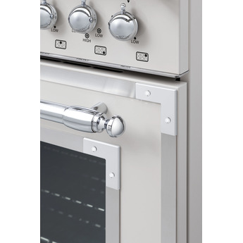 The 4.6 cubic feet self-cleaning oven is the largest in its class, with dual convection fan for balanced airflow and even temperature baking and roasting on 7 shelf levels. The elegant digital temperature gauge monitors the actual temperature in the oven and has integrated controls in the bezel for the food temperature probe. The extra wide electric broiler with optional convection is ideal for grilling and searing at high heat. The 2.4 cubic feet auxiliary oven is perfect for smaller dishes and for warming. Both ovens include convenient features such as smooth telescopic glides for the oven shelves and soft-close doors. The edge-to-edge interior oven glass door maximizes interior volume and can be wiped clean without effort.