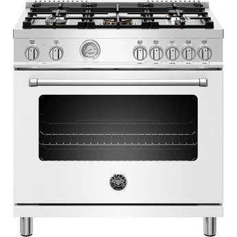 Bertazzoni Master Series 36" Matte White Slide-In Dual Fuel (Natural Gas) Sealed Burner Range - Convection