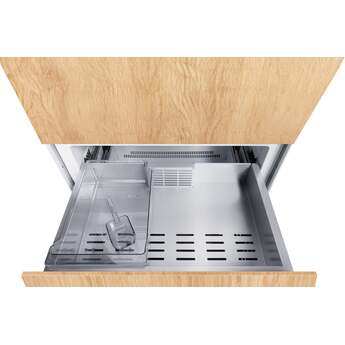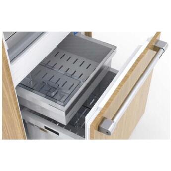 Intelligent features include hidden hinges, full door height with no exposed venting, front-end leveling for the back feet, a durable metal freezer drawer and 3-D door adjustment for perfect alignment. Besides its modern design, this refrigerator comes with an automatic ice maker that produces up to 11 lbs of ice per day and filtered water dispenser.