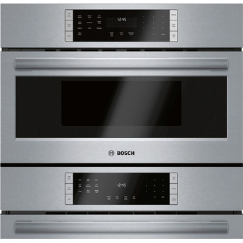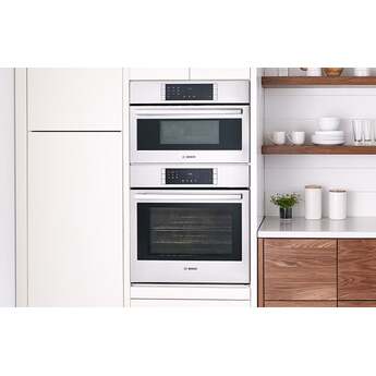 Bosch speed combination ovens create an all-in-one cooking center with an upper speed oven and a Genuine European Convection oven below.