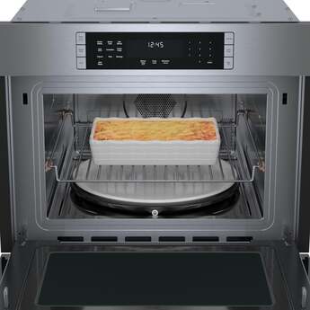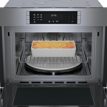 The Bosch HMC54151UC 500 24” Stainless Steel Electric Single Wall Oven is the cooking appliance you have been looking for to complete your kitchen. This speed oven combines the cooking qualities of a regular oven with the speed of a microwave to give you faster, but just as delicious results. This unit is actually a 2-in-1 Microwave and convection oven designed for smaller spaces so it works perfect for apartments, mobile homes, condos, townhomes, and smaller houses. When it comes to cooking your meal, you get ten different power levels and nine different pre-programmed cooking modes, as well as convection cooking options to choose from. Even better, the Bosch HMC54151UC installs flush with your existing kitchen cabinetry to look absolutely seamless. The stainless steel finish is sleek and smooth looking, adding a stylish element to the overall décor of your kitchen. Complete your cooking dreams and get yours at Greentoe.com today!