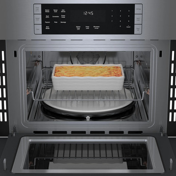Convection, Timer, Large Viewing Window, UL Certification, Convection Cooking, Cooked Food Sensor, Microwave Mode, SpeedChef, Stainless Steel Interior, Control Lock, Kitchen Timer, Digital LED Display, Touch Controls, LED Light, Flush Install in Stainless Steel