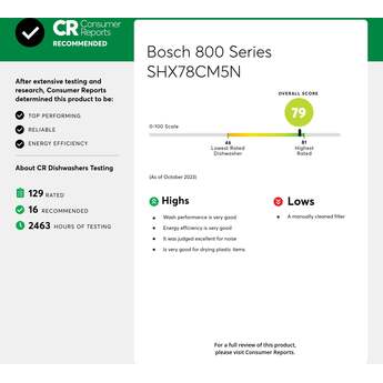 Bosch SHX78CM5N 800 Series 24 Inch Stainless Steel Built-In Fully Integrated Dishwasher