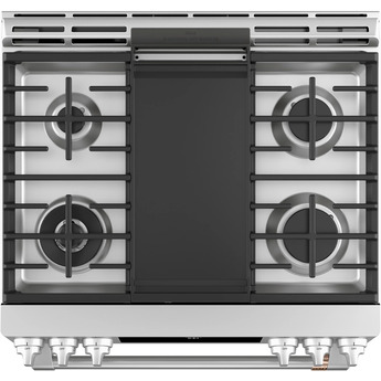 Accommodates cookware of all sizes and a cast-iron integrated griddle that provides enough room to perfectly flip crab cakes, arepas and other crowd favorites.