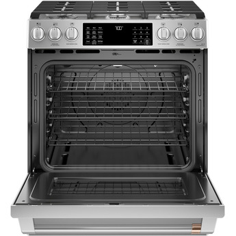 Achieve perfectly even desserts with accurate heat circulation thanks to True European Convection with Precise Air. Get roasts and meats just right with a temperature probe that lets you monitor progress without opening the oven door. Control your oven from any room in the house with your Smart phone using Wi-Fi Connect. Every detail of your kitchen is designed to delight, thanks to a sleek LED control panel that visually disappears when not in use and wakes up when prompted. Easily remove everything from heavy roasts to delicate desserts with self-clean racks that stay in the oven during the self-clean cycle. Create a chef-like experience with Chef Connect, which can synchronize your appliance clocks and surface lights and vent when a range burner is in use, and even your microwave and range clocks. This unit is also customizable - select from various hardware options to create a stunning look to suit your kitchen. This unit comes standard with stainless steel knobs and handle.