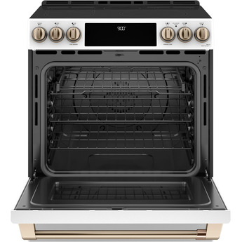 Create a chef-like experience with Chef Connect, which can synchronize your appliance clocks and surface lights and vent when a range element is in use, and even your microwave and range clocks. When you're updating your kitchen, attention to detail is a priority. That's why Cafe 30" slide-in ranges are guaranteed for an exact fit for an easy and seamless replacement of your current 30" freestanding range. Select any combination of premium finishes and hardware options to create a stunning look to suit your kitchen decor.