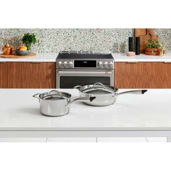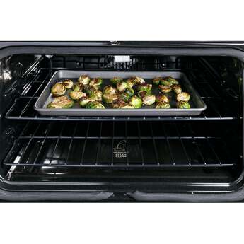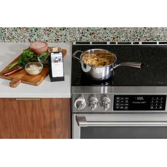 Delight guests with the precision of sous vide cooking or perfectly prepared fondues and delicate sauces using a precision cooking probe that is sold separately. Every detail of your kitchen is designed to delight, thanks to a sleek LED control panel that visually disappears when not in use and wakes up when prompted. Plus, backlit knobs bring an extra sparkle to the kitchen. Control your oven from any room in the house with your Smart phone using Wi-Fi Connect. Evenly heat large griddles or enamel cookware across two 8" synchronized elements.