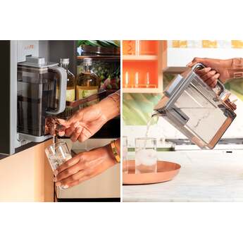 Enjoy chilled, delicious water anytime with a pitcher that automatically refills when placed on its docking station. Two curated pouring options give you quick access to filtered water.