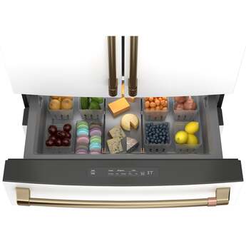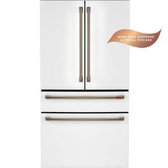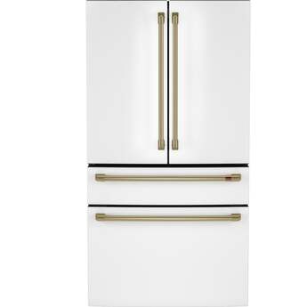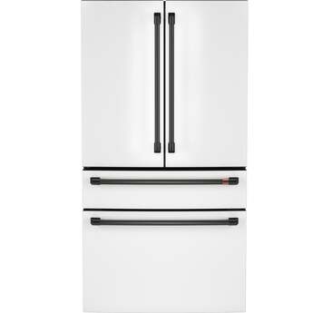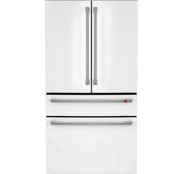 Cafe 36 Inch Counter-Depth Freestanding 4-Door French Door Smart Refrigerator with 23.2 cu. ft. Total Capacity, Dual-Dispense AutoFill Pitcher, TwinChill? Dual Evaporators, Convertible Drawer, Sabbath Mode, OU/CRC Certified and ENERGY STAR Certified: Matte White