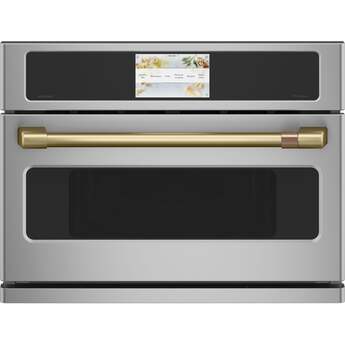 Cafe 27 Inch Built-In Smart Microwave Oven with 1.7 cu. ft. Total Capacity, Advantium® Technology, 7" Full-Color LCD Touch Control, 950 Watts, In-Oven Camera, Android OS and Pedestal Rack: Stainless Steel
