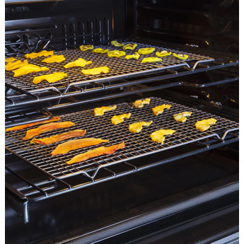 Make crispy flat breads, golden cookies, and tender turkey dinners with True European Convection with Direct Air that uses a variable speed fan to circulate head from the top down. Check your oven status with just a glance and keep mingling thanks to notification lighting. Achieve an even bake, every time, no matter the size with a ten-pass bake element as well as an even brown with a ten-pass dual broil element. With Wi-Fi Connect you can control your oven from any room in the house with your smartphone.