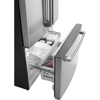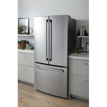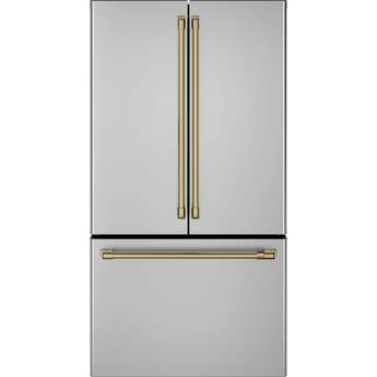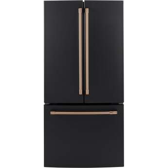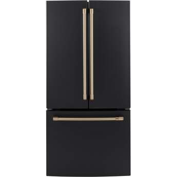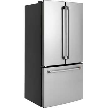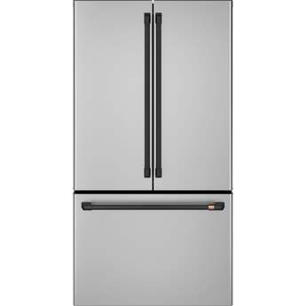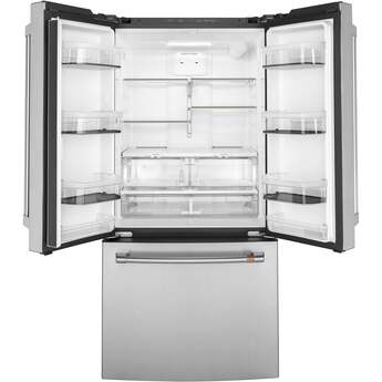 This counter-depth french door refrigerator by Cafe has 18.6 cu. ft. total capacity, and features ConnectPlus, turbo cool setting, multiflow air system with electronic sensors, factory installed ice maker, and is Energy Star Certified.