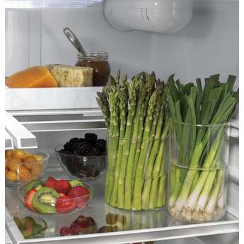 Easily store your farmer's market veggies and fresh fruits in two humidity-controlled drawers, and place large items like party platters and sheet cakes in a full-width, adjustable-temperature drawer