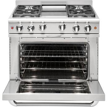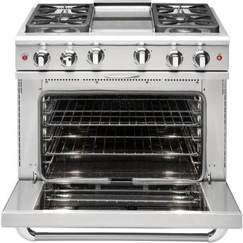 • Sealed Griddle, 4.9 cu. ft. Total Oven Capacity, Convection Oven, Continuous Grates, Viewing Window, Infrared Broiler, Large Viewing Window, Sealed Burners in Stainless Steel