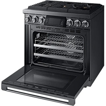 Even browning and powerful searing with 18,000 BTU double broiler in a 5.4 cu. Ft. commercial capacity oven