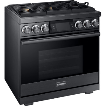 The Modernist series 36" Pro Gas Range features 6 burners with a total 116K BTU and a 5.4 cu. ft. oven with a Three-Part Convection System. the range also features Illumina Knobs and a 7" LCD control panel.