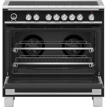 Designed for your safety and convenience, this range features full extension telescopic sliding shelves, a quadruple-glazed CoolTouch door, and a child lock. Induction cooktops heat only the cookware, not the elements, so they are much safer in family kitchens.