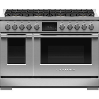 Fisher Paykel Series 9 Professional 48" Stainless Steel Dual Fuel (Natural Gas) Self Clean Double Oven Sealed 8-burner Range - Convection