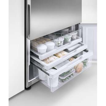 Fisher & Paykel Counter-Depth ActiveSmart Refrigerator with Side Pocket Handle ActiveSmart refrigerators are designed to match Fisher & Paykel's family of kitchen appliances as well as your lifestyle. ActiveSmart refrigerators combine premium detailing, intelligent design features, and food care solutions that help keep your food fresher longer. This refrigerator features adjustable spill-proof glass shelves, humidity-controlled produce drawers, adjustable door bins, multiple freezer drawer, and a freezer tray for smaller items.