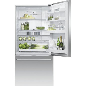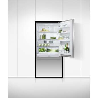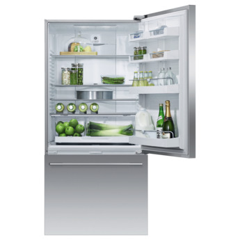This minimal refrigerator from Fisher & Paykel has eNough space for the whole family's food items, and features an elegant design that brings a touch of elegance to any home kitchen. The 17 cu. ft. refrigerator includes ergoNomic storage bins and glass shelves that can be configured to suit every lifestyle. Special humidity controlled crisper bins provide the ideal climate conditions for the long-term storage of fresh produce. The lower drawer-based freezer ensures that longer-term storage items are easy to access and kept perfectly preserved. Interior LED lighting provides visibility throughout the refrigerator, so finding what you want is easy. This model is ENERGY STAR qualified to save you energy and money.