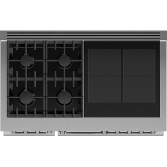 On the gas side of the cooktop, Sealed dual flow burners deliver power up to 23,500 BTU, while the induction side delivers up to 2100W. This finely tuned cooktop provides instant and immediate control from the highest heat to the most gentle simmer.