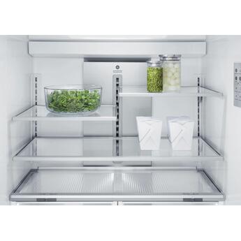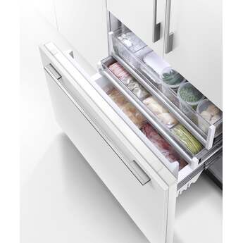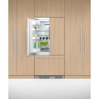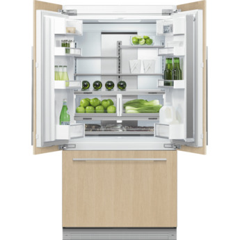 Complete your kitchen with this panel ready french door refrigerator by Fisher & Paykel. The ActiveSmart techNology works to keep your food fresher for longer by constantly monitoring how you use your fridge and adapting to maintain a controlled environment and optimum temperature. The fast freeze feature quickly and drastically lowers the temperature of the freezer for quicker freezing - ideal for when you've just added new items to the freezer. The removable, cantilevered glass shelves are spill-safe, making cleaning up messes quicker and more efficient.