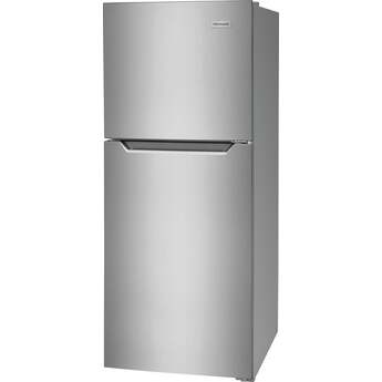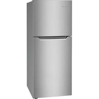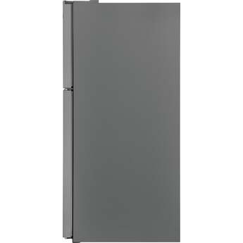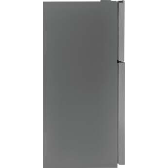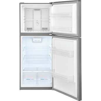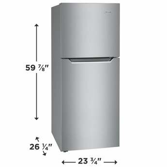 The modern design of this top freezer refrigerator makes it an ideal addition for smaller urban spaces. Hidden hinges and handles keep shaves precious inches off the total dimensions of this fridge and adds to its sleek aesthetic. SpaceWise Adjustable Glass Shelving provides multi-level placements to customize your setup. Clear door bins can hold condiments and even gallon-sized beverages. Bright LED lighting will make everything inside easier to find.