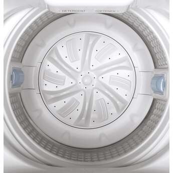 With a long-lasting stainless steel drum and child-proof lock, the GE-GNW128SSMWW 2.8 cu. ft. White Compact Top-Load Washer represents the future of clothes-cleaning, no matter the space. Beginning with enhanced capacity, this 2.8 cu. ft. electric washer floats the perfect (24-inch) width in a modest space plus multiple wash cycles and temperature levels. Its eight wash cycles include jeans, towels, speed-wash and delicates. One-touch electronic controls and LED read-out push the laundry limits ever forward. Fortunately, fill and drain hoses come with, so set that load to deep-fill and say hasta la vista to stains!