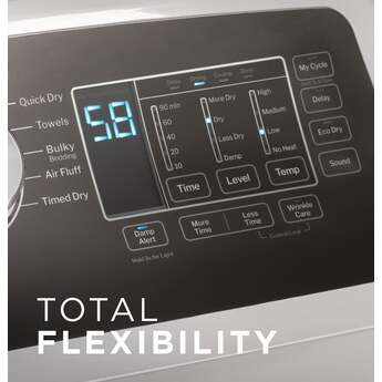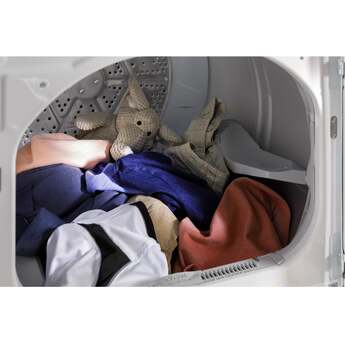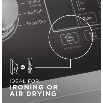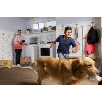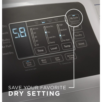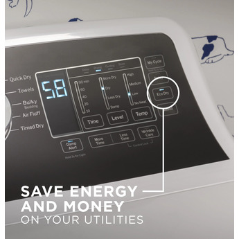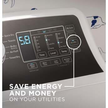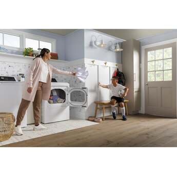 • 7.4 cu. ft. Capacity, 12 Dry Cycles, 4 Temperature Settings, Long Venting, Sensor Dry, Drum Lighting, Upfront Lint Filter, Aluminized Alloy Drum in White