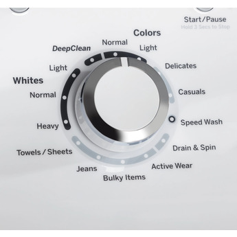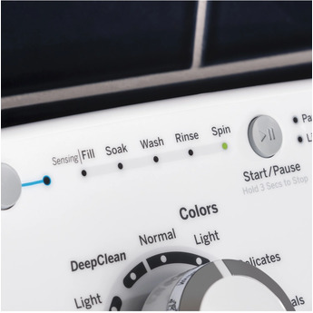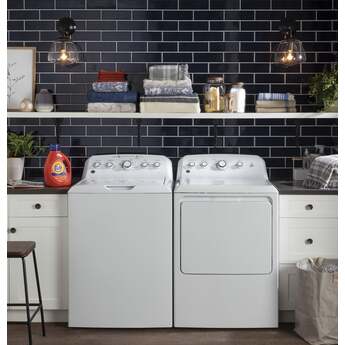 No job is too large or too small for this powerful top-load washer from GE. This washer's 4.5 cubic feet of washing space allows you to wash the largest of laundry loads, even bulky blankets and towels. Select your preferred load size for the desired water level or let the machine automatically sense the load and add the amount of water needed to ensure great cleaning results. Then pick among eleven wash cycles to achieve the perfect clean for your clothing. The washer's heavy-duty agitator creates powerful wash action that rotates your laundry for a thorough clean every time.