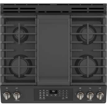 • 5 Sealed, Burners, Griddle, Convection, Self-Cleaning Mode, Storage Drawer, ADA Compliant, in Black Slate