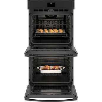 Cook a meal for a whole family with this GE 27" built-in convection double wall oven. Each oven provides 4.3 cu. ft. capacity with true European convection to prepare your large dishes in optimal conditions. Use hidden backlit LCD controls to simply operate the oven. The bright display shows the clock when not in use and illuminates controls when you're ready to cook.