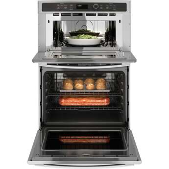 Complete heat coverage. Attractive details. Reliability. These are the characteristics that define the GE JT3800SHSS combination wall oven. Get it at Greentoe's today and enjoy savings you won't believe!
