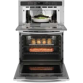 This combination oven has the basics you've come to expect like a digital temperature display, an electronic clock, and a kitchen timer, but it also has handy extras like an audible preheat signal and delay start cooking. This GE appliance was proudly