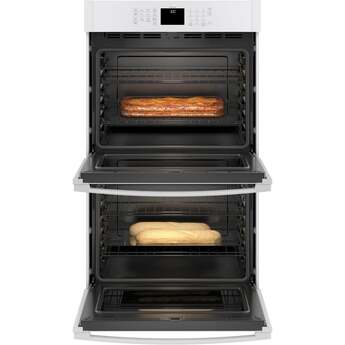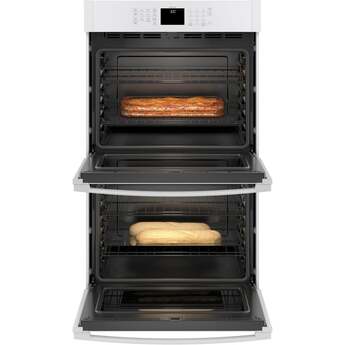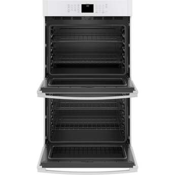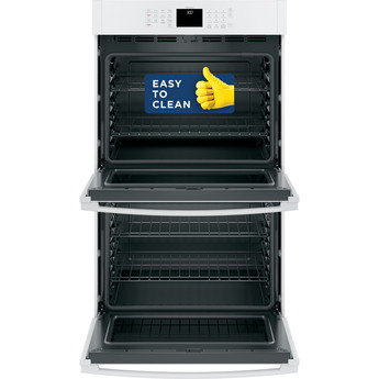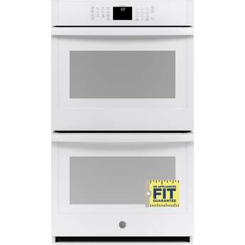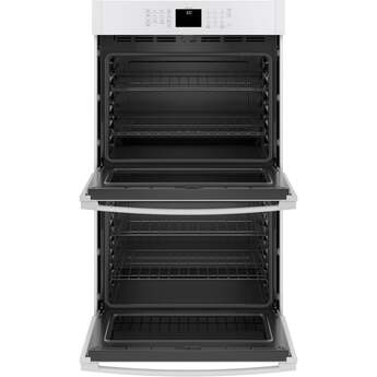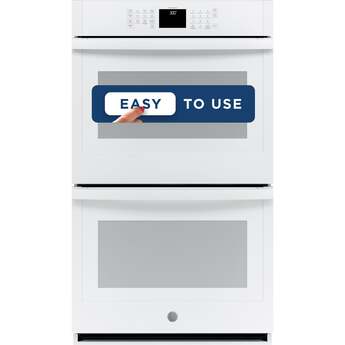 This 30" Electric Double Wall Oven by GE offers 10 cu. ft. of total capacity. The oven features Scan-to-Cook technology which allows you to scan the barcode of your favorite packaged food with your smartphone and the oven adjust the settings automatically. The oven also features glass touch controls, 10-pass hidden bake element and never scrub, heavy-duty racks.
