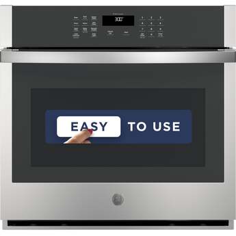 This 30" Electric Single Wall Oven by GE offers 5 cu. ft. of capacity. The oven features Scan-to-Cook technology which allows you to scan the barcode of your favorite packaged food with your smartphone and the oven adjust the settings automatically. The oven also features glass touch controls, 10-pass hidden bake element and never scrub, heavy-duty racks.
