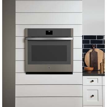 This 30" built-in convection single wall oven by GE has 5.0 cu. ft. capacity, and features self-clean with steam clean option, electronic glass touch controls, 8-pass broil element, 10-pass bake element, Wi-Fi connect and is sabbath mode certified.
