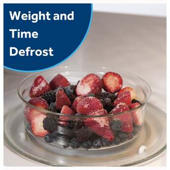 • Weight and time defrost: Simply enter the weight of the food, and the oven automatically sets the optimal defrosting time and power level or set your desired time for defrosting