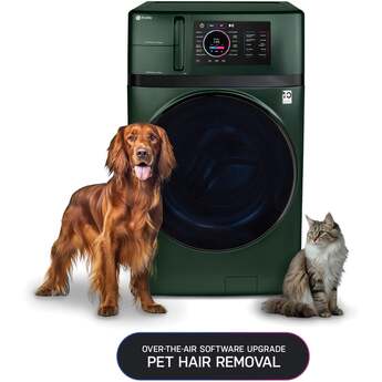 GE 28 Inch Smart Front Load Washer/Dryer Combo with 4.8 cu.ft. Capacity, 12 Wash Cycles, 14 Dryer Cycles, Ventless Heat Pump Dryer, EZ Access Lint Filter, SmartDispense™ Technology, Dynamic Balancing Technology, Eco Cool™ Cycle, ADA Compliant, and ENERGY STAR® Qualified (Works with Standard 120v Outlet): Green