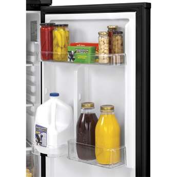 The Haier HA10TG21SB 9.8 Cu. Ft. Black Refrigerator is the space saving appliance you need in your kitchen. The crisper drawer has adjustable humidity control, giving your fruits and vegetables maximum freshness and a longer shelf life. In addition, this model also comes with two removable and adjustable spill proof glass shelves that make wiping up messes as easy as can be. Thanks to the perfectly sized clear gallon door bin and liter door bin you will never again need to try and make room for your larger pitchers and containers. The interior uses LED lighting which lasts longer and helps save some money by using less energy than incandescent lighting. Complete your home and get your Haier HA10TG21SB at Godekers.com today!