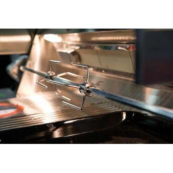 • Built-in ceramic infrared rotisserie burner delivers searing heat from 12,000 to 18,000 BTUs and is located above the stainless steel rotisserie to lock in flavor and juices.