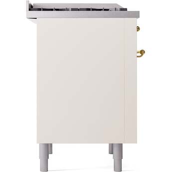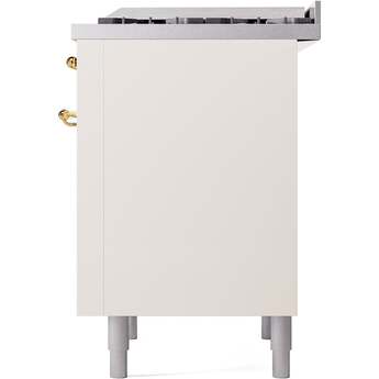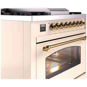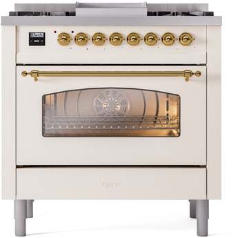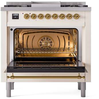 ILVE UP36FNMPAWGLP Nostalgie II Series 36 Inch Liquid Propane, Dual Fuel Freestanding Range with Brass Trim, in Antique White