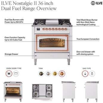 • Nostalgie II Series 36 Inch Freestanding Dual Fuel Range