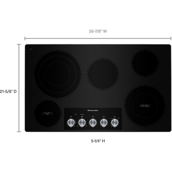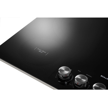 Prepare delicious stovetop meals with the KitchenAid KCES556HSS 36" Stainless Steel Trim Black Ceramic Glass Electric Smoothtop Cooktop. This cooktop's 10-inch Even-Heat Ultra Power Element with Simmer Setting is great for making stew, chili or soup, its six-inch Even Heat with Melt Setting lets you melt foods like chocolate and butter, and it includes a hot surface indicator which aids in safe operation.