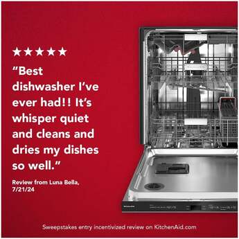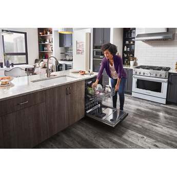 provides quiet cleaning without compromising performance, so there's no need to wait to run a wash cycle while entertaining and enjoying meals, even in open concept kitchen