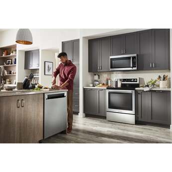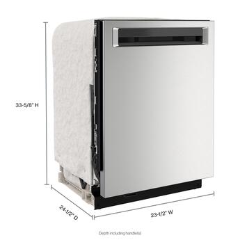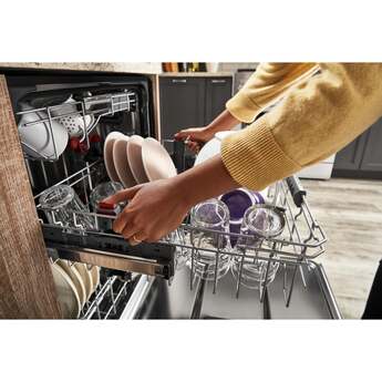 Keep up with the tools you use from prep to table with this dishwasher's three racks of versatile loading possibilities and complete wash coverage. The FreeFlex Third Rack fits glasses, mugs, bowls, silverware and cooking tools, freeing up room below for pots, plates and mixing bowls. Advanced Clean Water Wash System circulates clean water to dishes in all three racks, and the Fan-Enabled ProDry System provides thorough drying, so dishes come out ready for more enjoying.